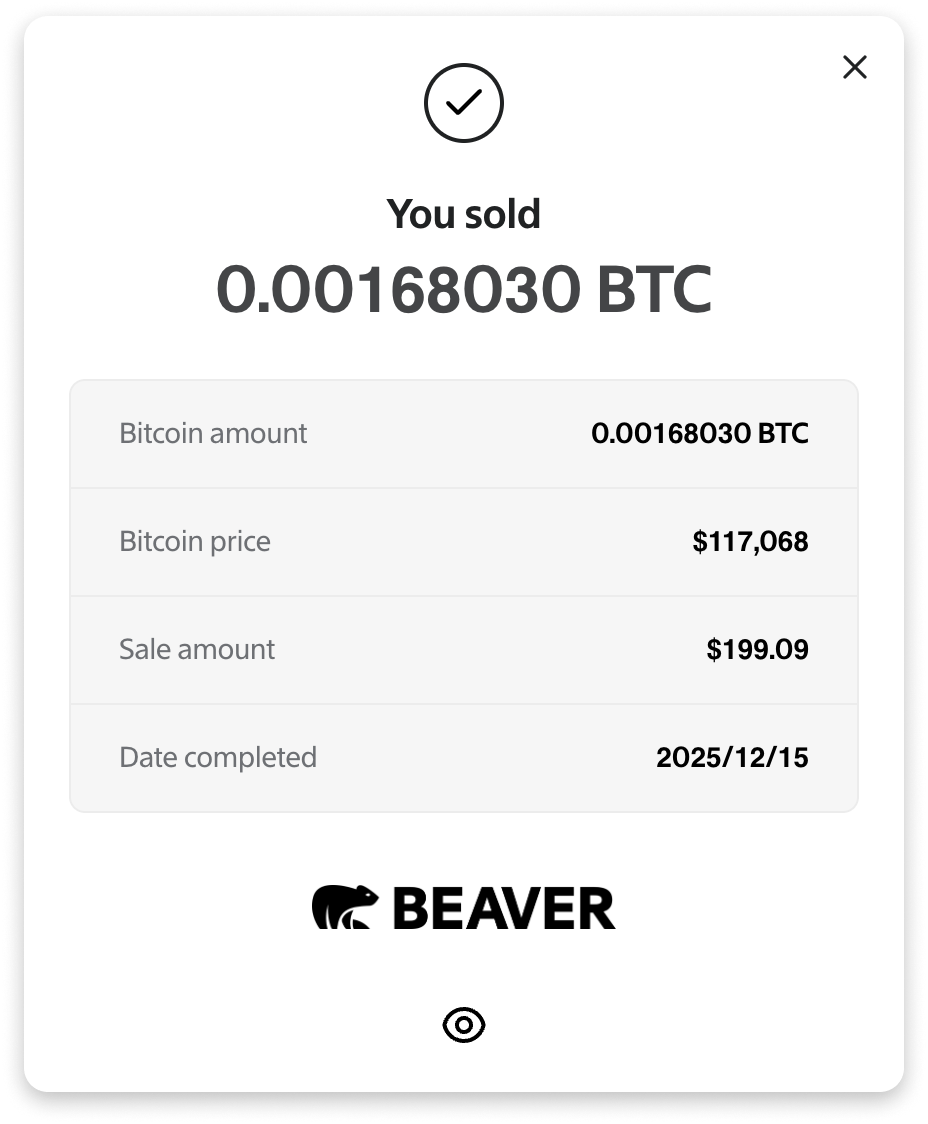 The details of your sell can be viewed in your sale confirmation email or in your Transactions feed when logged in to Beaver.